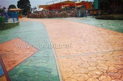 彩色压模地坪是园林绿地构图中的重要组成部分,是园林风格和立意体现的标志之一,尽管在整个绿地面积所占比例有限,但其造型、色彩能起到画龙点睛的作用,为园林增色。一般来说,与绿地衔接最为密切的是彩色压模地坪,应用范围包括园路、台阶、广场等,随着人民生活水平的不断提高,新材料、新技术的不断推广,大众审美意识的不断提高,人们对园林艺术美的要求也越来越高,因此彩色压模地坪被广泛应用到园林工程中。彩色压模地坪是通过对混凝土表面进行彩色渗透强化处理,采用压印、养护和密封保护等多道处理工艺而形成的。彩色艺术地坪的色彩、强度、耐磨性、防滑性、防水性等都能达到天然石材的真实感和强度,可以承受高流量人群和载重车辆的通行。