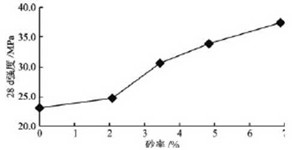 从上述试验结果得出砂率与透水混凝土强度、透水系数和孔隙率的关系,增加砂率,透水混凝土的强度增加,透水系数和孔隙率降低,并且砂率为3.4%和6.9%时,透水混凝土的强度和透水系数有显著的变化。
