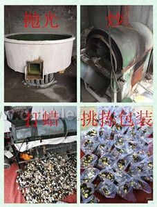 对于硬质腊,也可以用加热工具(如电风筒)一边加热一边对准腊质材料,使腊质慢慢浸透道石质里面;也可以先把硬质腊放入容器加热待其溶化后,再把腊液刷道石头表面,使腊液慢慢浸透道石头里面。在这一过程中,还可以用电风筒进行加热,以加快腊液的浸透速度。待腊液浸透道一定的程度以后,把石头表面的不再浸透的腊质刮掉,然后用干爽的柔软的布(如棉布等)擦拭石头表面。如果石头吸收腊液的能力较强,可以重复上述工序。继续用干爽的布用力擦拭直到石头表面产生腊光为止。液态腊原则上也是如此操作。 经过以上工序,一件石头上光的工序就基本完成了。