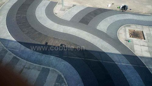 素土夯实后,铺碎石层,然后再浇筑素色透水混凝土,面层铺彩色透水混凝土
