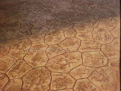 2针对混凝土压花地坪局部脱皮的地方,进行铲除并清理清洗,洒水使脱皮地方保持湿润,使用专用的混凝土界面剂浇洒地面,并使用混凝土界面剂搅拌压花地坪骨料(颜色需相近),重新覆盖脱皮的地方,考虑可能压花模具的不同,可以手工压实表面并理出与周边纹路相同的效果,如果面积大,可使用相同或类似的模具重新压实。